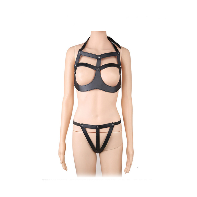 Leather harness bondage reveal breast sexy lingerie pants cospaly clothes adult games slave