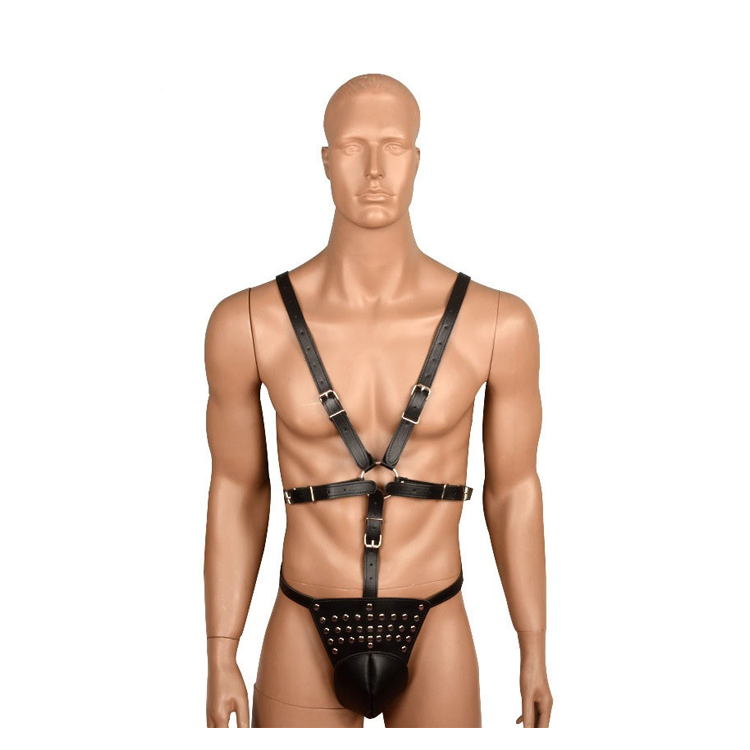 Male bondage harness chastity belt pants sexy lingerie slave costume cosplay clothes leather restrai