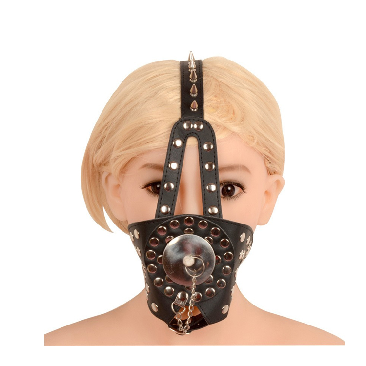 Spike head leather harness mask hood mouth gag cover slave bondage restraints bdsm fetish toys adult
