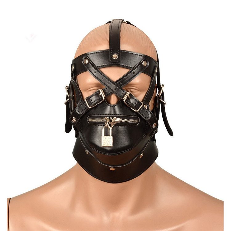 Male head bondage leather harness slave cosplay mask headgear hood adult games bdsm fetish