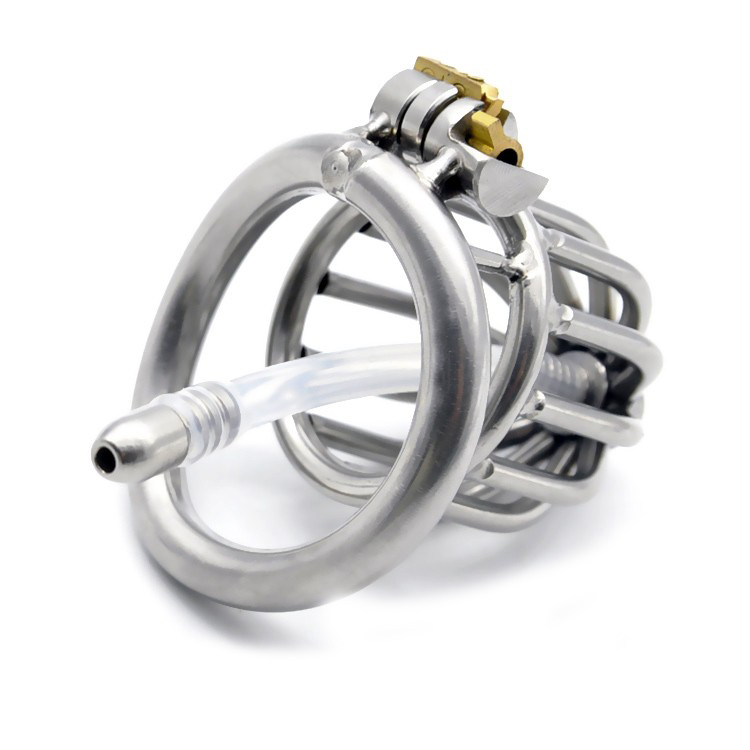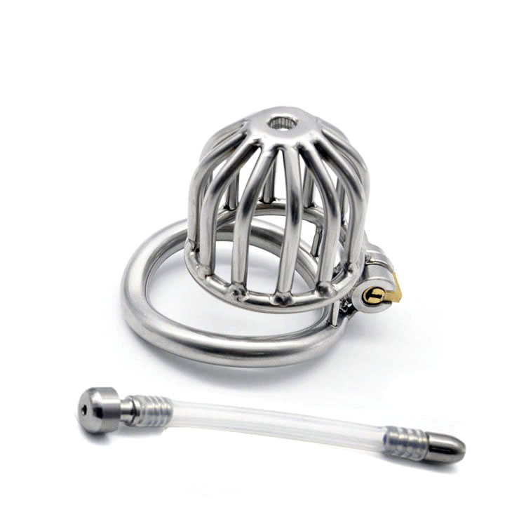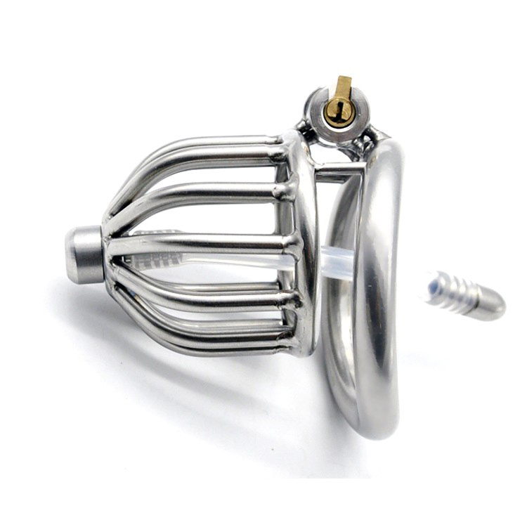 Stainless steel male chastity belt steel cock cage with penis plug penis ring chastity device