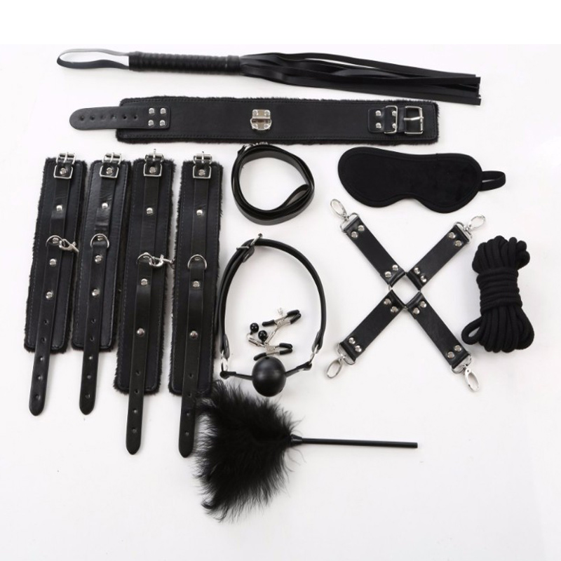 Leather Restraints Whip Gag Nipple Clamps Bondage Collar with Sex Couples Fetish Sex Products Erotic