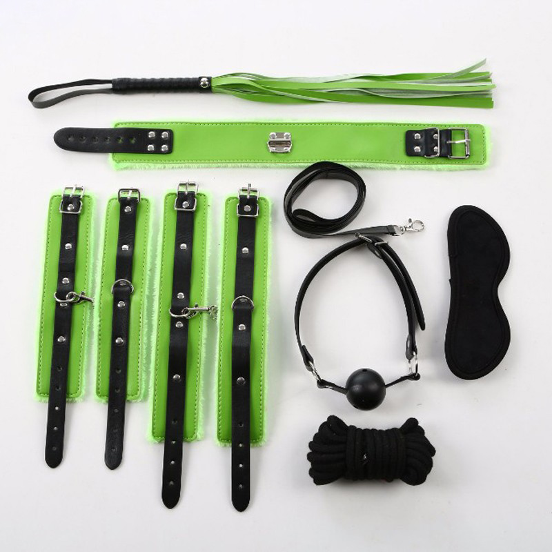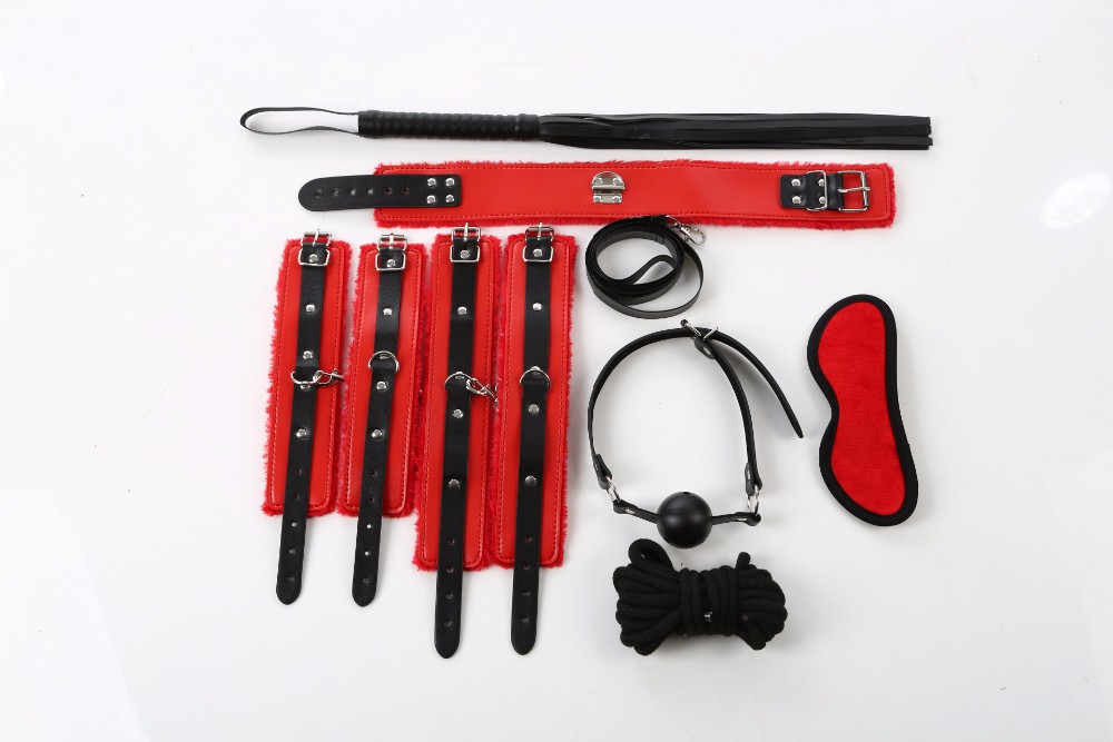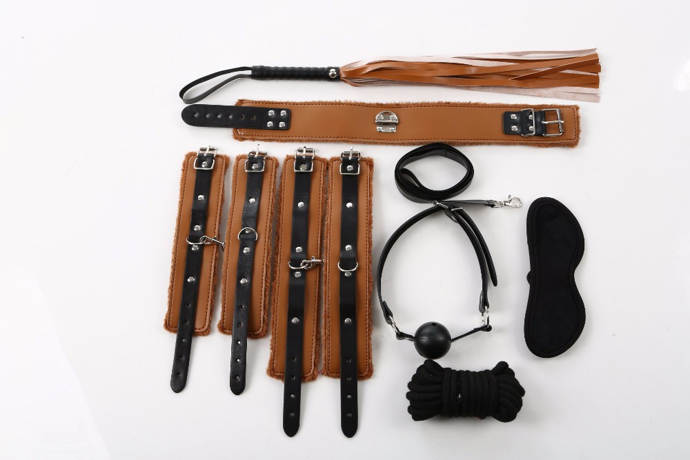 Sex Bondage Fetish BDSM Roleplay Handcuffs Whip Rope Blindfold Ball Gag with PU Leather Slave Bondag