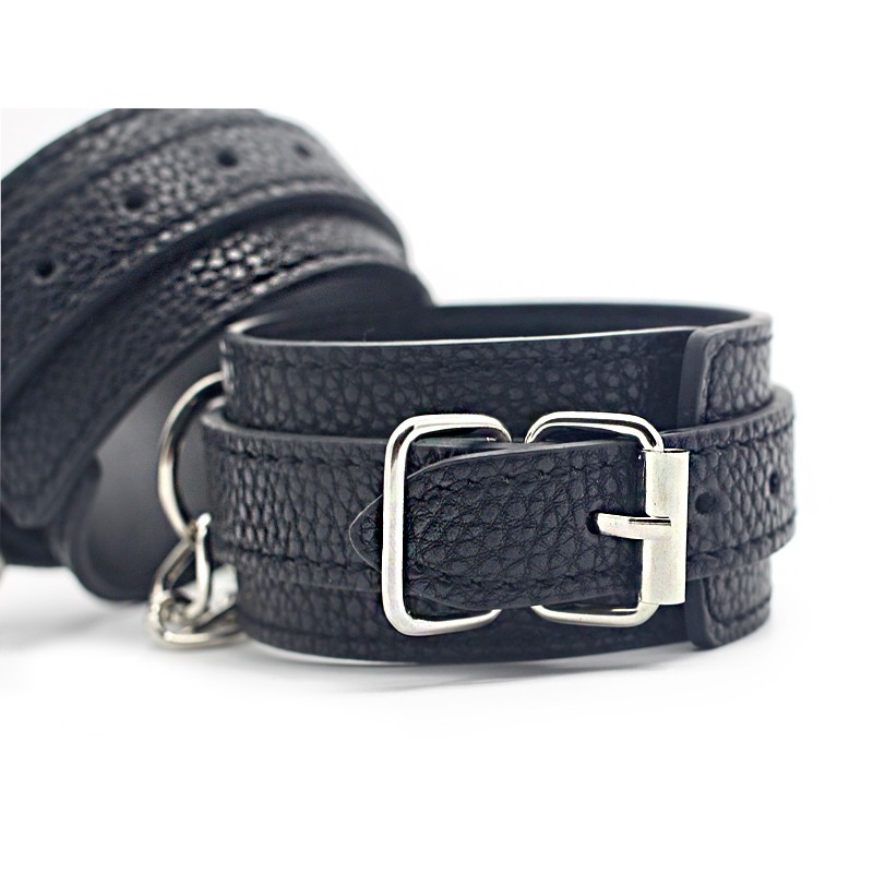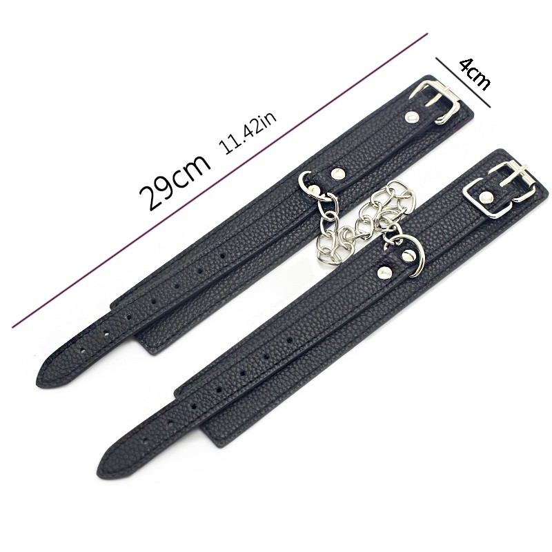 Black PU Leather Comfortable Handcuffs Restraints Bondage Tools Flirting Tool for Beginners