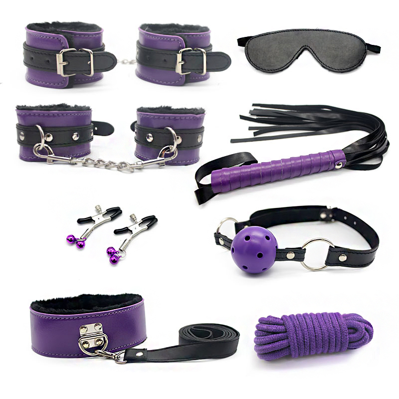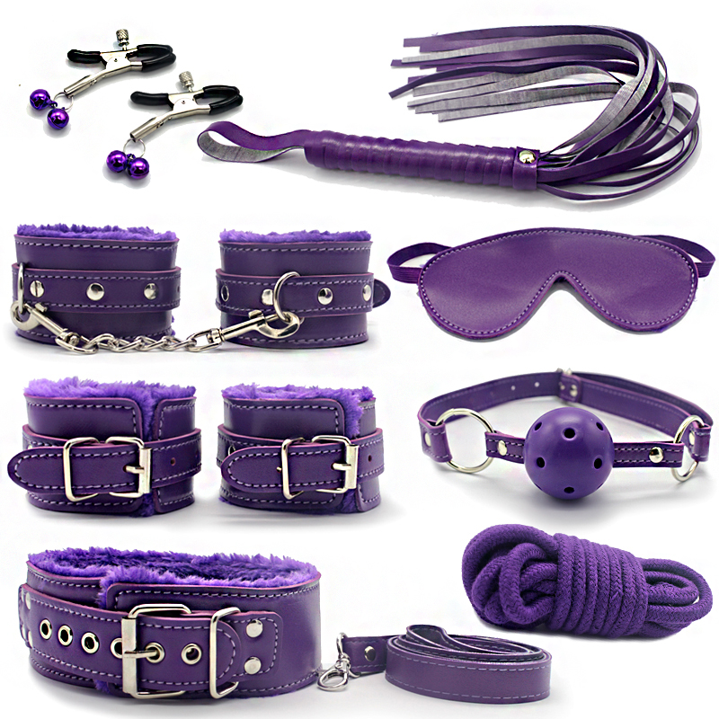High quality Pu Leather Fetish Bed Restraints Couples Sex Products with Bondage Rope Handcuffs nipple clamps Adult games