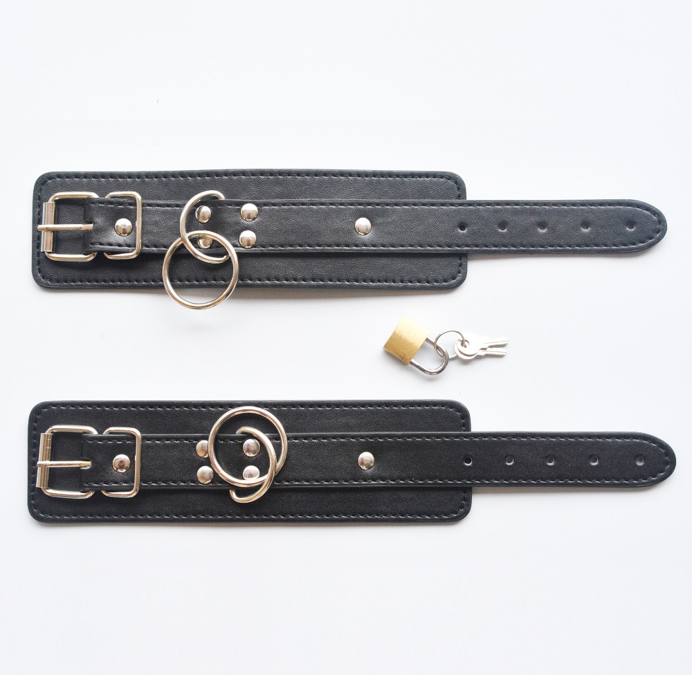 Faux Leather Sex Handcuffs Wrist Restraint Slave fetish Sexy Hand cuffs with lock for women