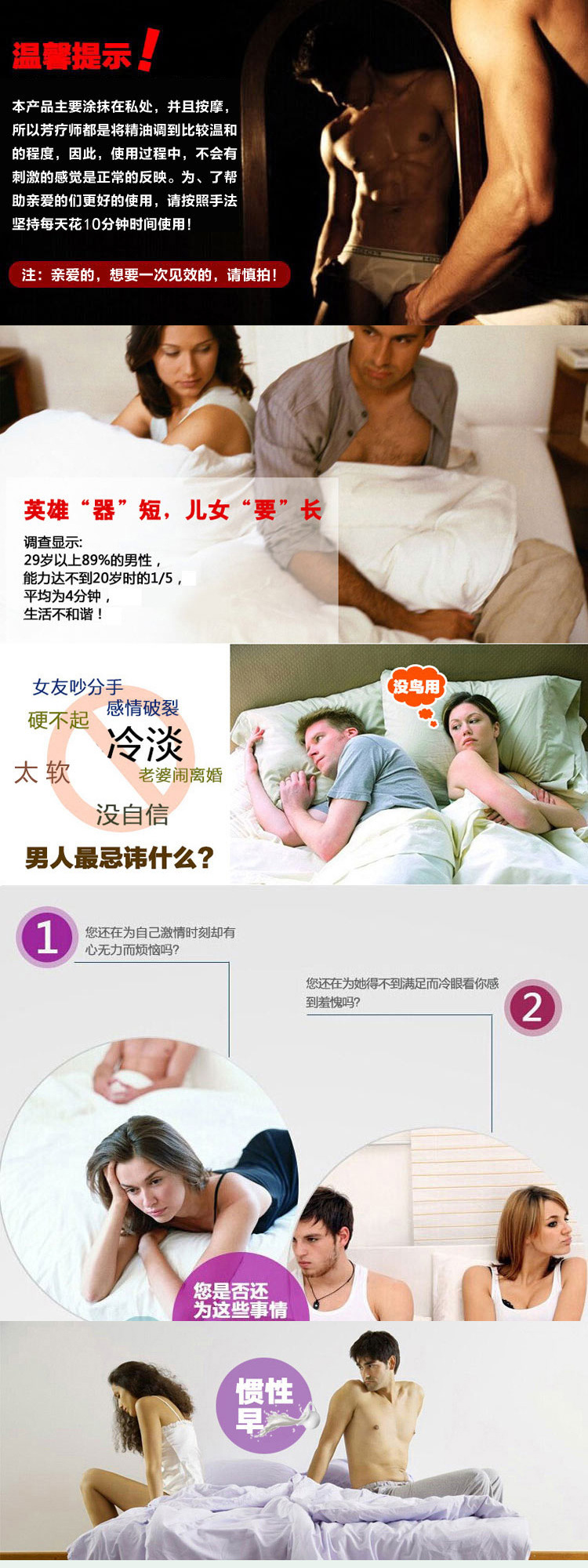 2, the penis enlarged more than 20%, the growth of 2-3 cm, let you be more powerful, more pleasure spot; woman's pleasure is greatly enhanced when sexual intercourse, vaginal secretions, more, more easily achieve orgasm.