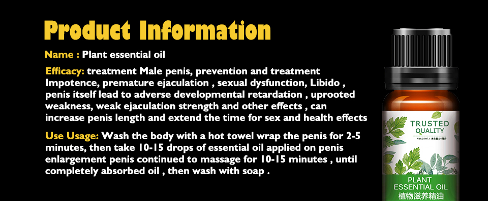 - Essential oil Effect:Penis enlargement , premature ejaculation, impotence treatment