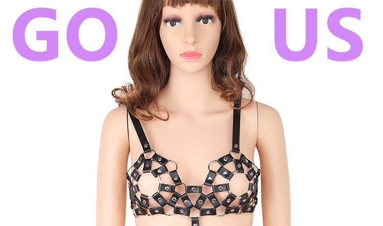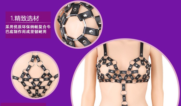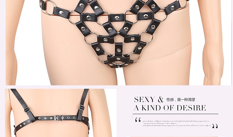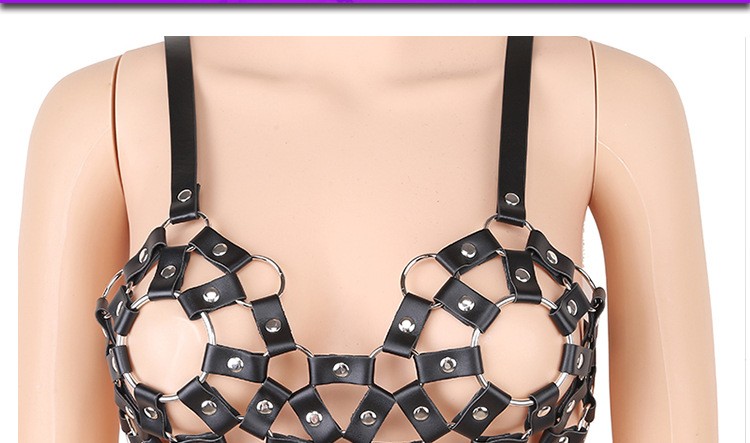 Leather metal bondage harness bra underwear sexy lingerie clothing fetish clothes for woman strap