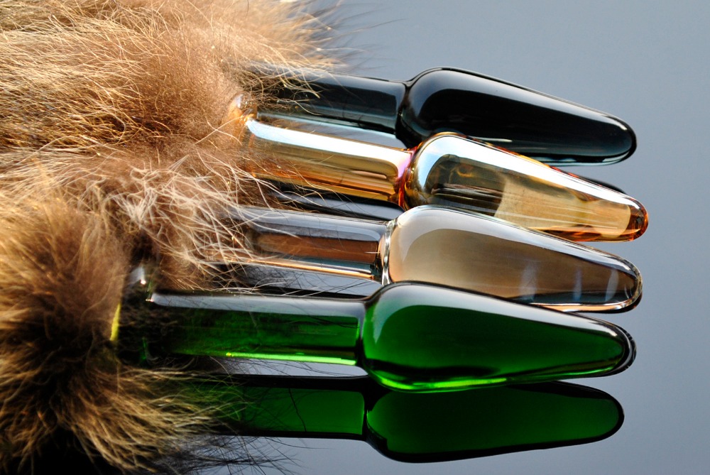 Glass anal butt plug with cat tail animal fox costume masturbate bead dildo for couple women men gay