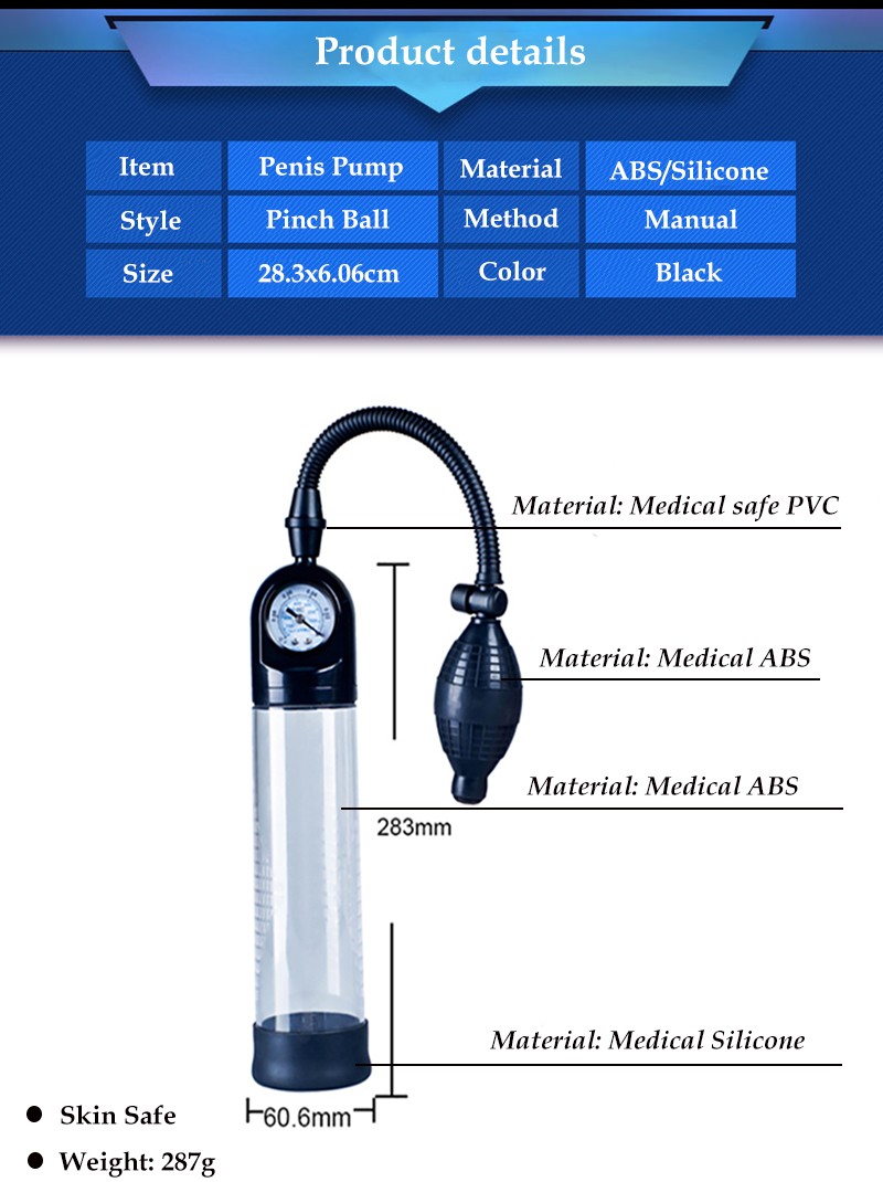 Feature: Manual Operation Handsome Up Vacuum Penis Pump with Instrument Paneg