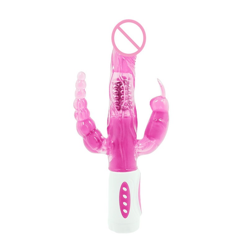 4 Functions Rotation Dildo With Anal Plug And 12 Speed Clitoral Rabbit Vibrator Female
