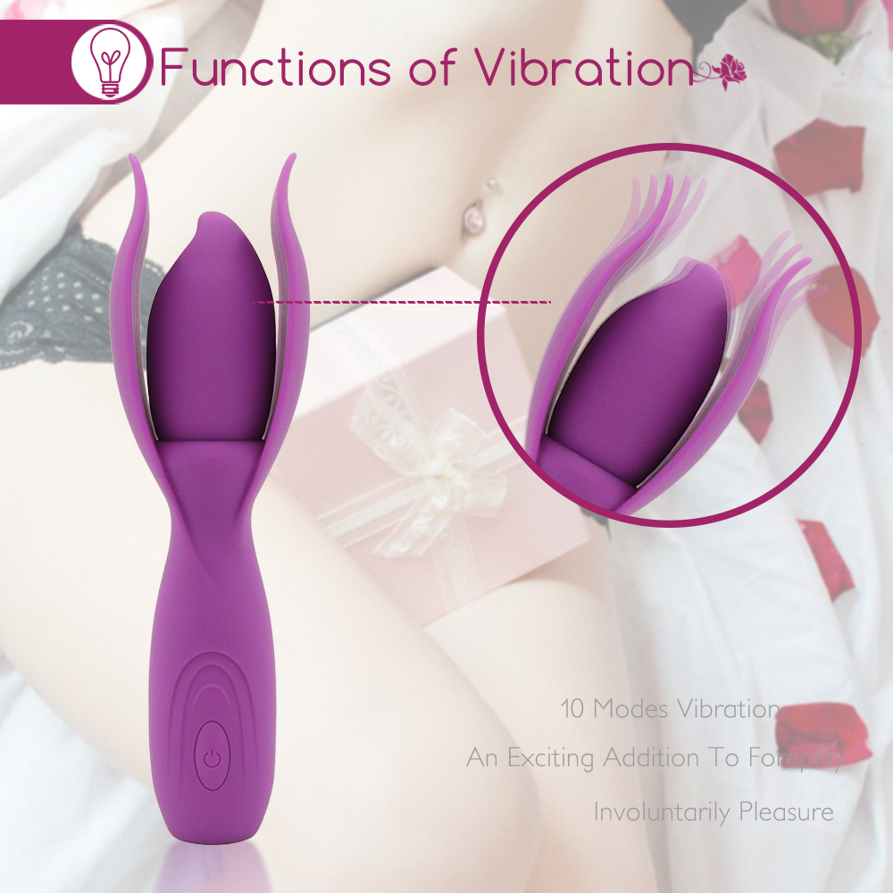 USB Rechargeable Lotus Waterproof Vibrating Stick with Clitoral Stimulation Vibrator G-Spot Massager for Woman