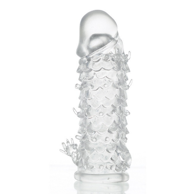 This gorgeous penis enhancing sleeve is designed with her in mind -it's covered in gloriously sensational nubs and has a curved tip for hitting the G-spot just right! Ultra-stretchy, it'll fit any size!